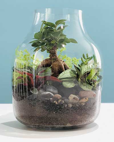 A terrarium is a miniature garden housed within a glass-sealed container that creates a self-sustaining ecosystem.